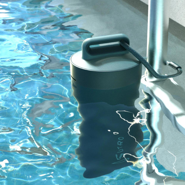 The Smart Monitor is a water testing robot that floats in your pool (or spa) and is about the size of your forearm. It's a luxurious dark teal color with a waterproof cylinder to confirm no water gets inside of the unit. Inside of the cylinder is a Rechargeable Battery and the Test Cartridge.